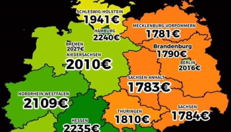 Evo kolika je prosječna mjesečna “Netto” plata po saveznim državama u Njemačkoj. Razlika između istoka i zapada ogromna