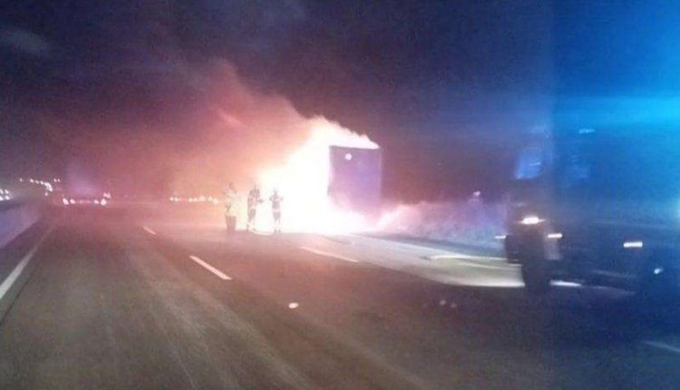 Požar je izbio u blizini čvorišta Halle-Trotha, a prema prvim informacijama policije, uzrok požara najvjerojatnije je puknuta guma.
