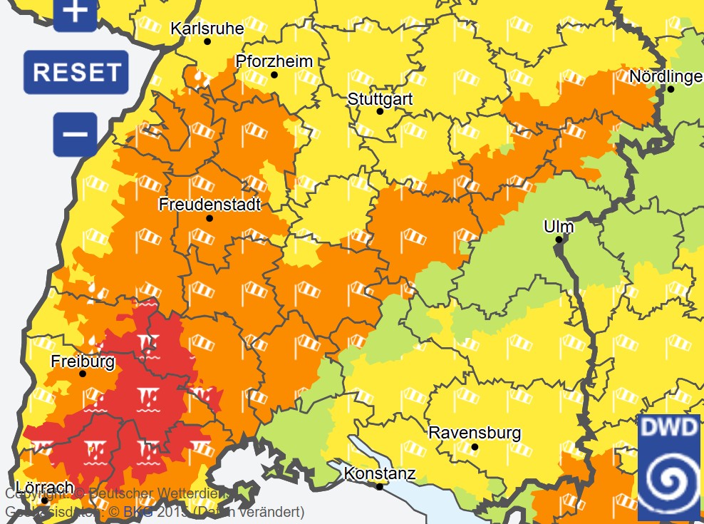 Njemačka meteorološka služba (DWD) izdala je najviša upozorenja za jugozapad zemlje. Ako se nalazite u ovim okruzima, savjetuje se maksimalan oprez: